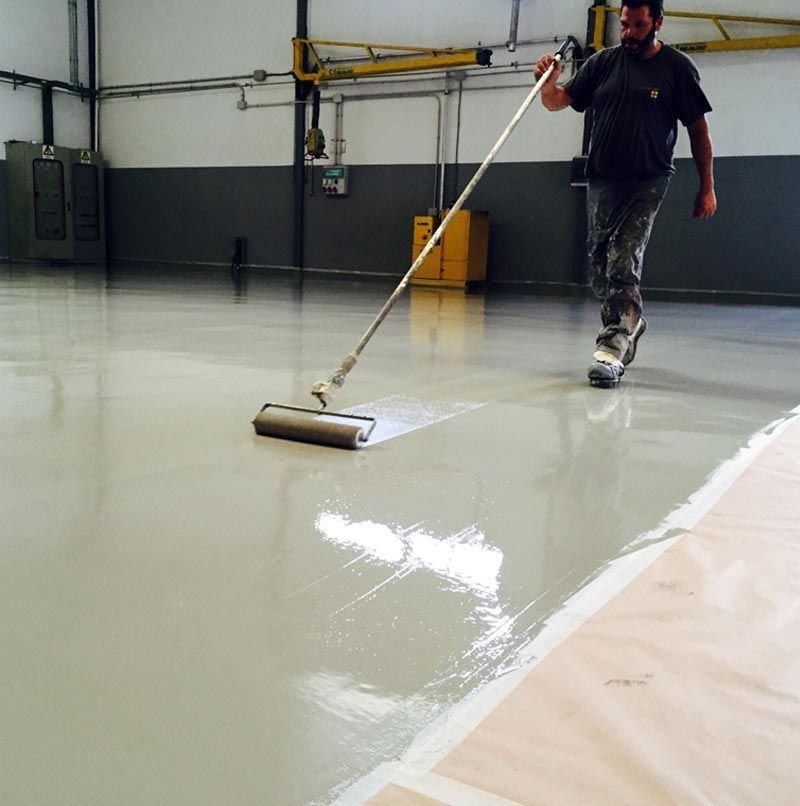 Es el sistema más rico en resinas y, por lo tanto, más duradero y limpio. Se aplica sobre el soporte de hormigón, con llana dentada, dejando un espesor en torno a 2mm. El acabado, debido a ser autonivelante, resulta muy liso, sin juntas y de color uniforme. Se utiliza en industria alimentaria , salas blancas o en exposiciones de salones como, por ejemplo, concesionaria de coches.